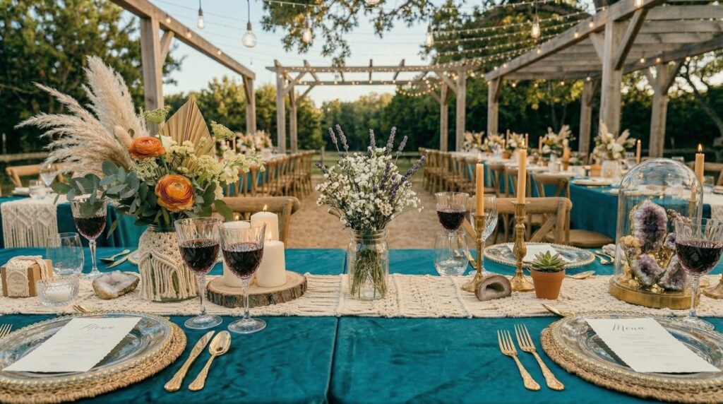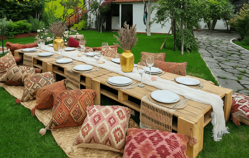 Creamos montajes en espacios abiertos o privados, cuidando cada textura, color y detalle. Una experiencia íntima, estética y perfectamente diseñada.
